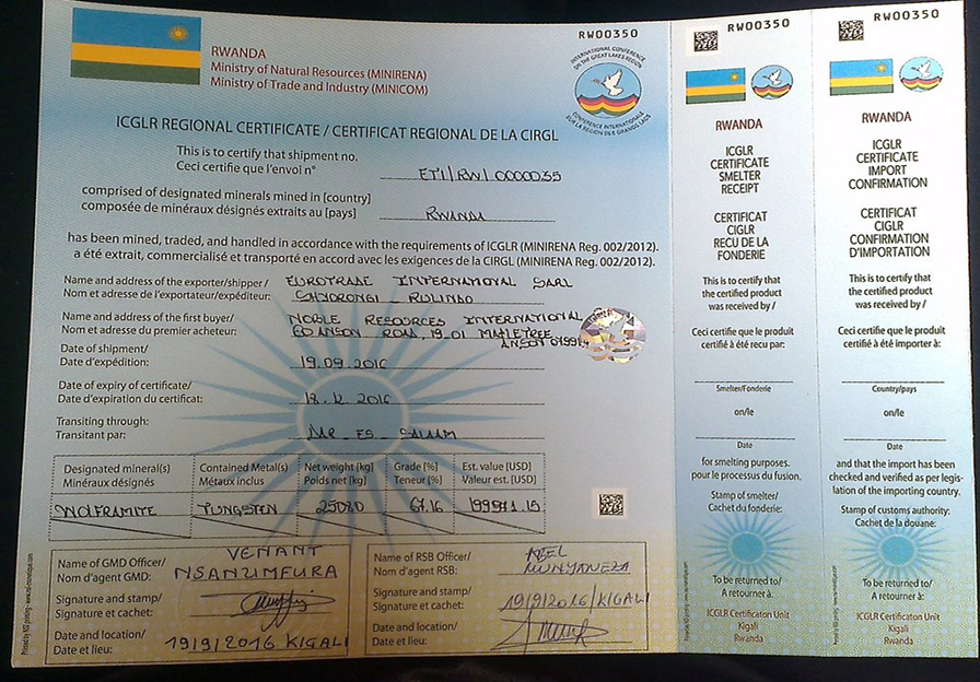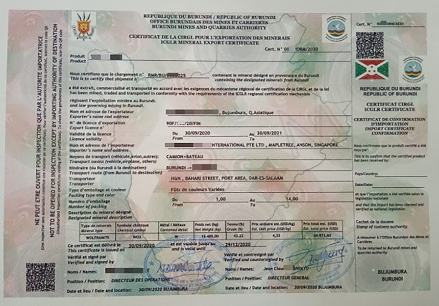 Only Burundi, DRC, and Rwanda issue ICGLR certificates. Verify them here.